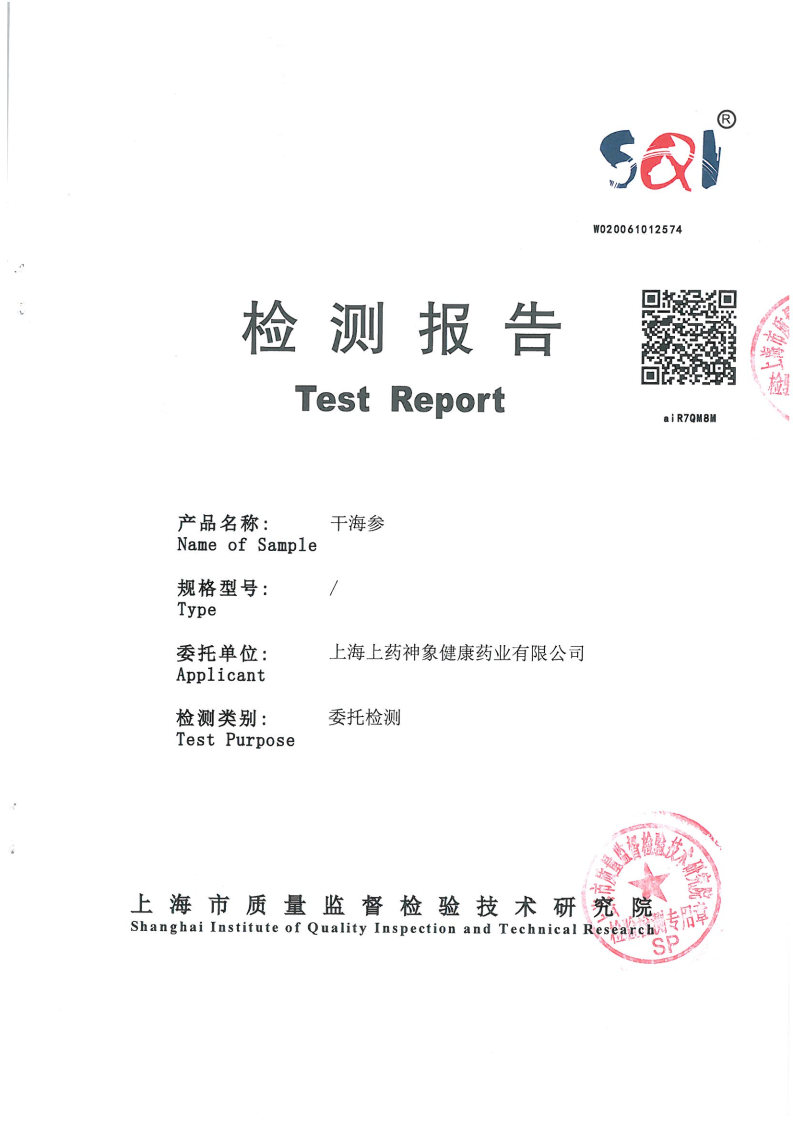 同时上药神象严格把控海参的质量指标,包括检测抗生素、含盐量,泡发率等多项指标。每批次都将送检至上海市质量监督检验技术研究院检测。经权威部门检测合格方可上市销售。