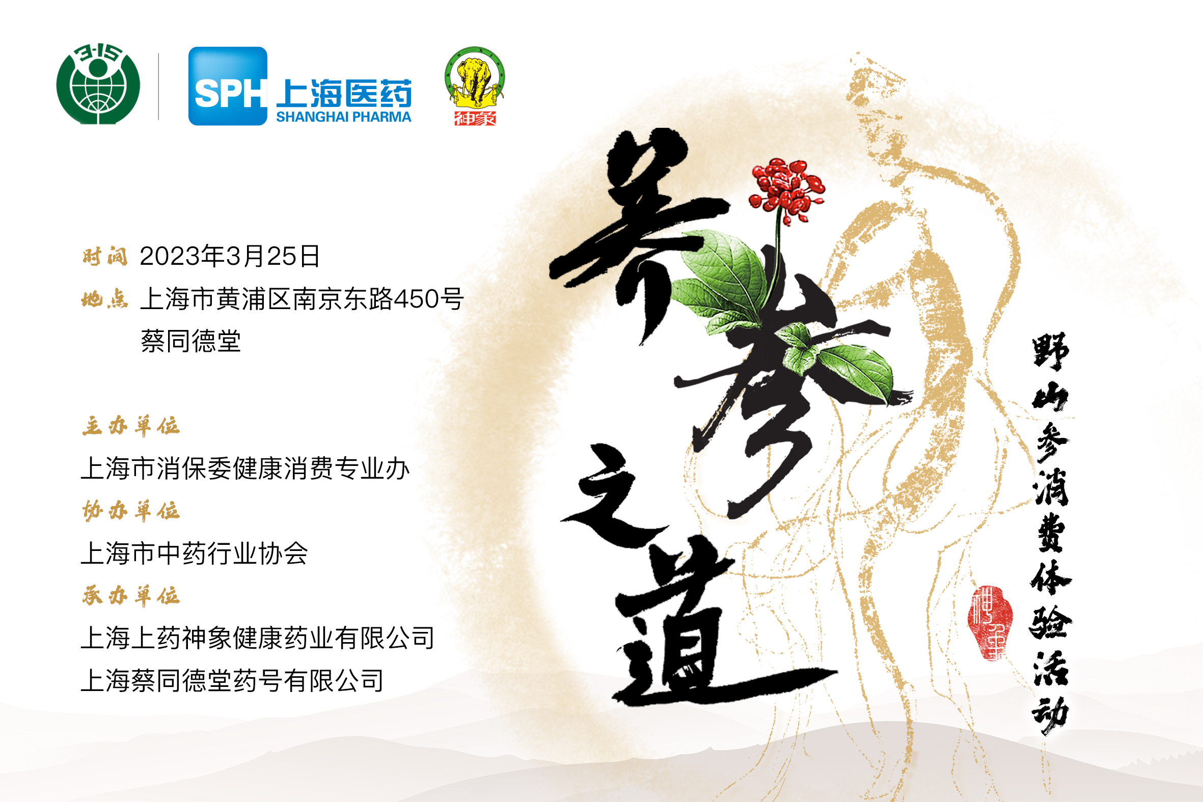3.25日由上海市消保委健康消费办主办,上海市中药行业协会协办,上海上药神象健康药业有限公司承办的【 “养‘参’之道”野山参消费体验活动】第二轮活动即将开始,活动消费体验官现正火热招募中!